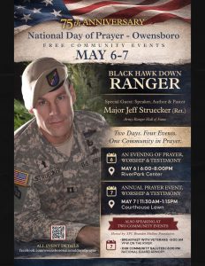 Our Keynote Speaker is Major Jeff Streuker who will be in our community for three additional events as part of the National Day of Prayer.